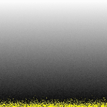 wget http://bl831.als.lbl.gov/~jamesh/bin_stuff/floatgen.c gcc -o floatgen floatgen.c -lm seq 0 65535 | ./floatgen >! ramp.binNow we run these pixel values through noisify. It will use some sensible defaults for detector geometry to put into the header (it does not affect the results), and guess at the x-y size of the detector: