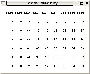 od -t u2 --skip=512 ALS831_lyso_Gd_001.img | head 0001000 8224 8224 8224 8224 8224 8224 8224 8224 * 0001060 10 0 0 0 0 0 0 0 0001100 0 0 0 0 0 0 0 0 * 0031000 0 0 40 40 40 16 24 38 0031020 47 42 32 27 40 43 36 33 0031040 40 42 38 34 48 43 50 37 0031060 27 43 39 43 43 35 35 38 0031100 46 40 31 37 36 29 26 52you can also inspect this image in adxv or any other X-ray image viewer and see that the first few pixels in the upper left corner really do have value 8224 (which is not typical, but convenient here), followed by a few rows of zeroes, and then followed by the actual active detector pixel values.
